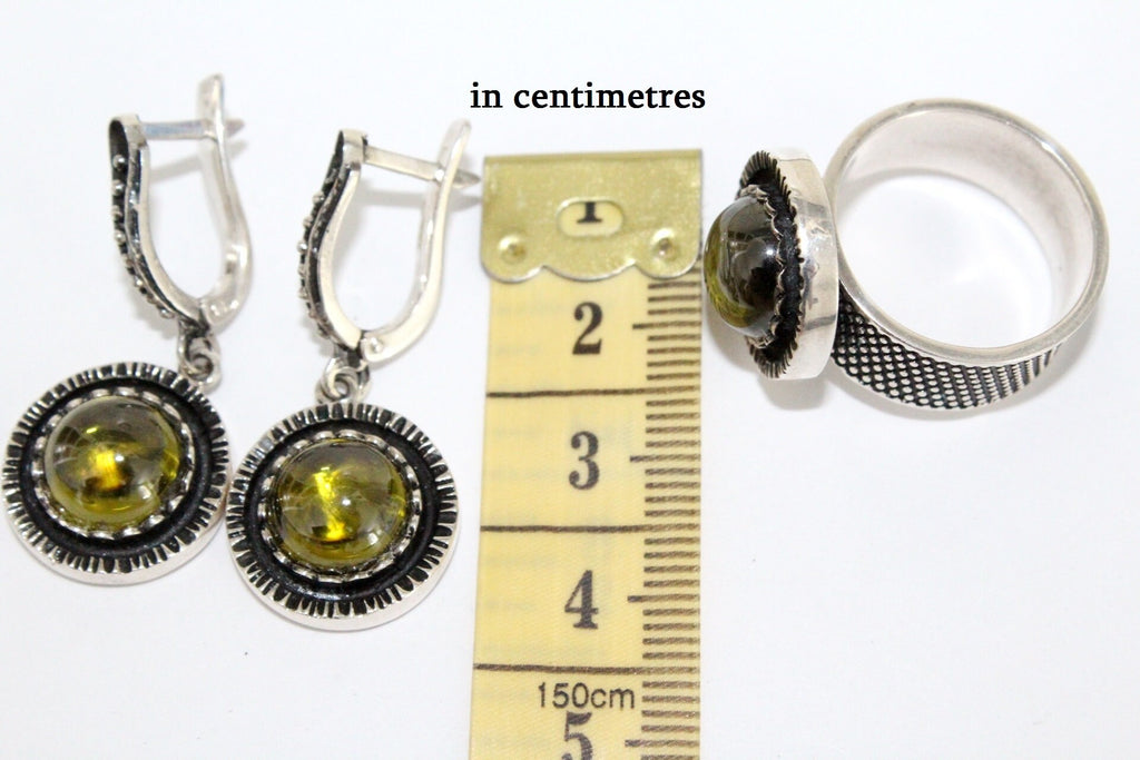 Indulge in the small jewelry SET of your dreams. Made with high-quality silver 925, the set features lab citrine stones in a stunning greenish-yellow color. Complete your look with the tiny earrings and small ring, both adorned with round stone cabochons. Elevate your style and add a touch of sophistication with this beautiful SET. Top-rated by customers with 5-star reviews, our jewelry is a must-have for any jewelry lover.