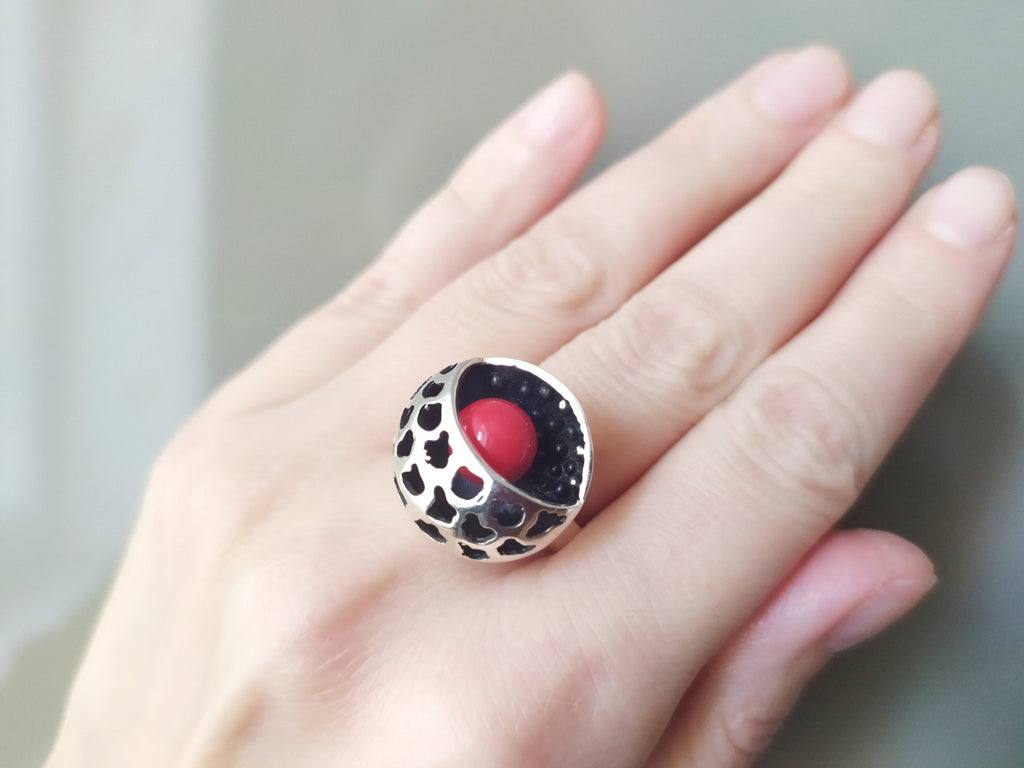 Add a touch of elegance to your jewelry collection with our 925 sterling silver ring. The round lab coral adds a pop of color, while the oxidized black finish gives it a unique, unusual look. Perfect as a gift for her, this high quality piece from our Etsy shop is sure to impress. Find the perfect piece of high-quality jewelry on Etsy, the top store for unique and thoughtful gifts. Enjoy free shipping worldwide and take advantage of our discounts at this reliable online store. Shop with confidence and surprise your loved ones with the best jewelry from Etsy.