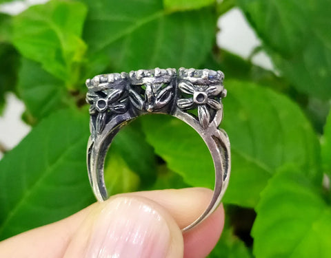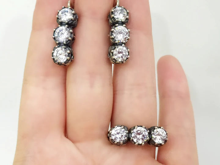 This stunning statement ring features a delicate rose design, handmade with 925 silver and adorned with black zircon stones. Not only is it a beautiful addition to any jewelry collection, but it has been recognized as one of the top choices for jewelry online. Elevate your style with this unique Armenian piece. We make this set with blue, black and white stones. Please, choose from the options.