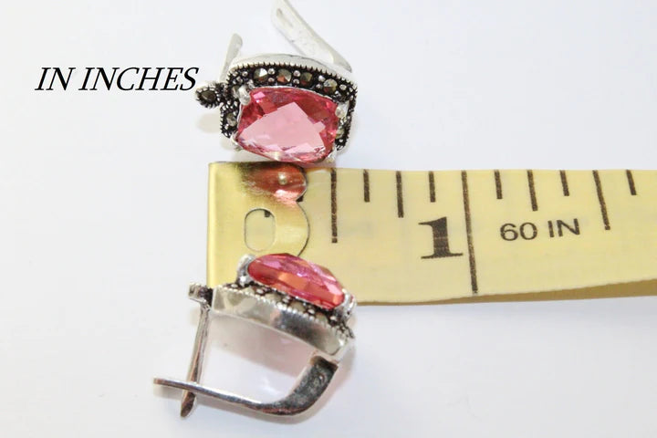 Sterling Silver earrings (pink topaz): Weight: 6 grams Length: 1 cm = 0.5 inch