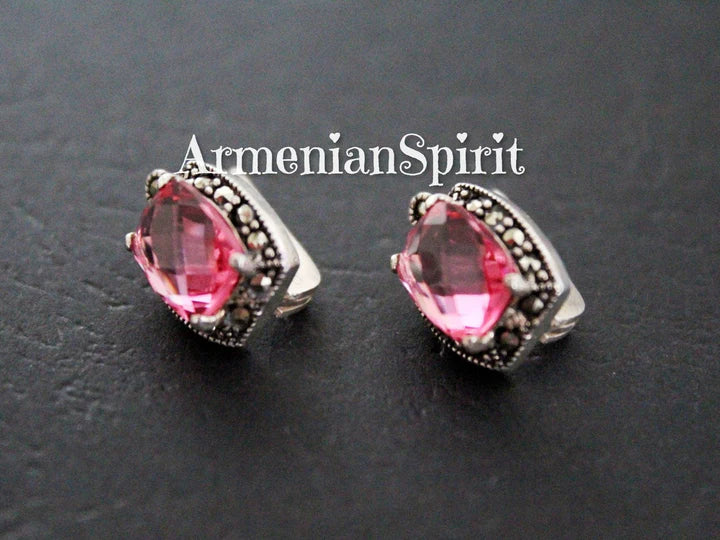 Introducing our Tiny Ring Pink Marcasite Jewelry, handmade in Armenia. Made with 925 silver, this delicate ring features small, shimmering marcasite jewels. Perfect for everyday wear and as a wedding or special occasion accessory, this ring will add a touch of elegance and sophistication to any outfit. Don't miss out on the chance to add this beautiful piece to your collection.
