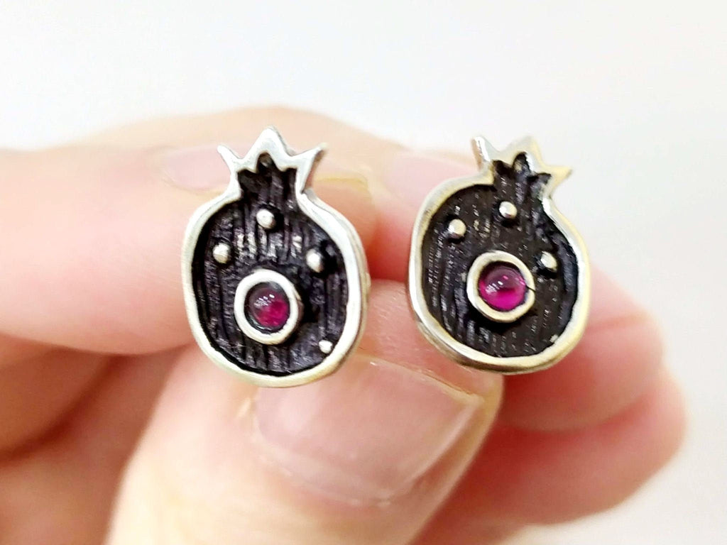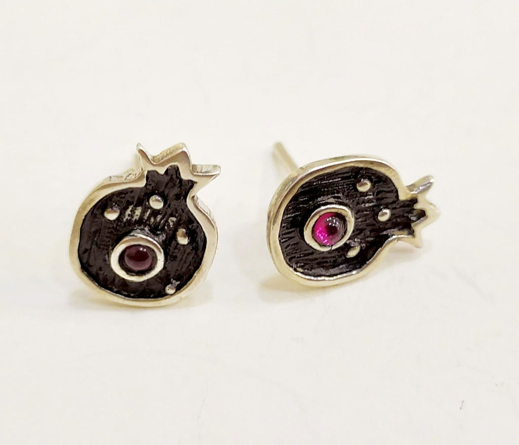 Discover the perfect addition to your jewelry collection with these beautiful Tiny Silver Stud Earrings. Handcrafted with STERLING SILVER 925 and featuring small pomegranates and a red stone, these earrings are the perfect combination of Armenian traditions and symbols. Add a touch of culture and elegance to any outfit with these stud earrings.