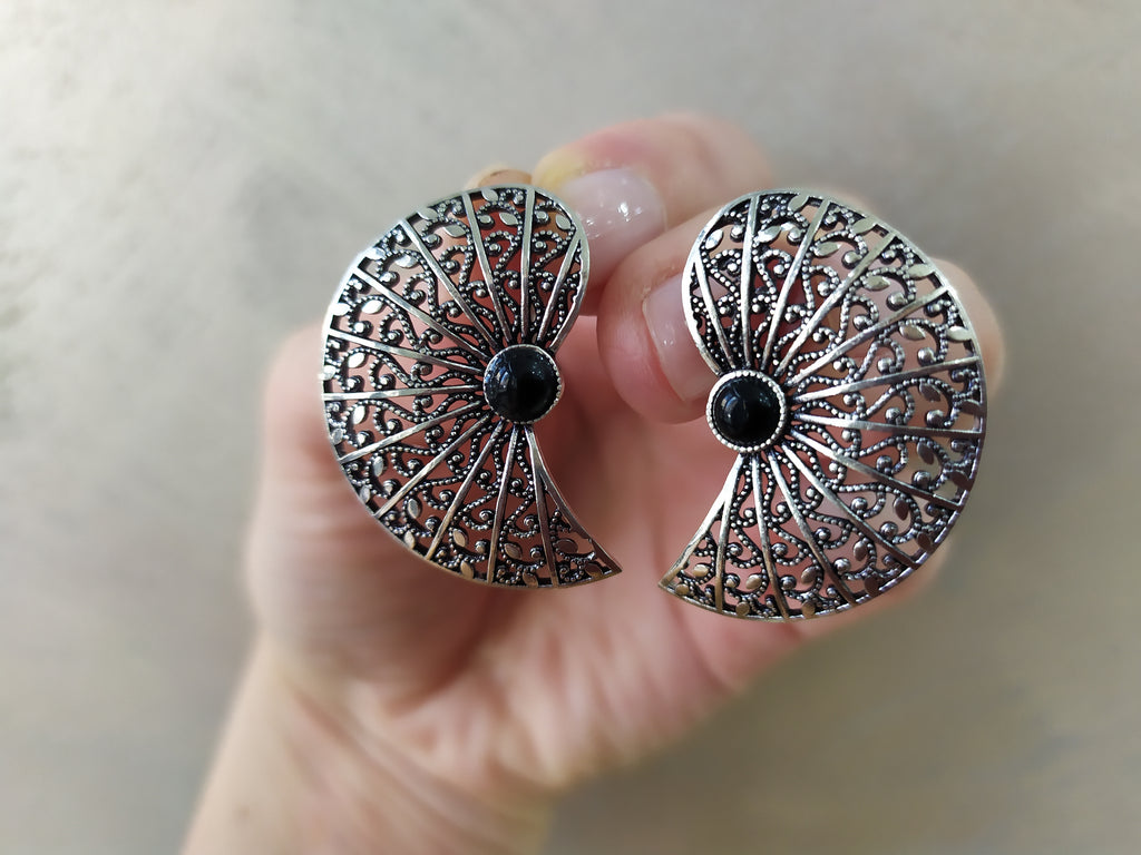 Handcrafted in Armenia, each piece features a stunning semi-circle design with a striking black onyx stone. Perfectly compliments any little black dress for an exquisite look. Elevate your style with these luxurious and unique statement pieces. Trust the excellent customer reviews and enjoy free worldwide shipping.