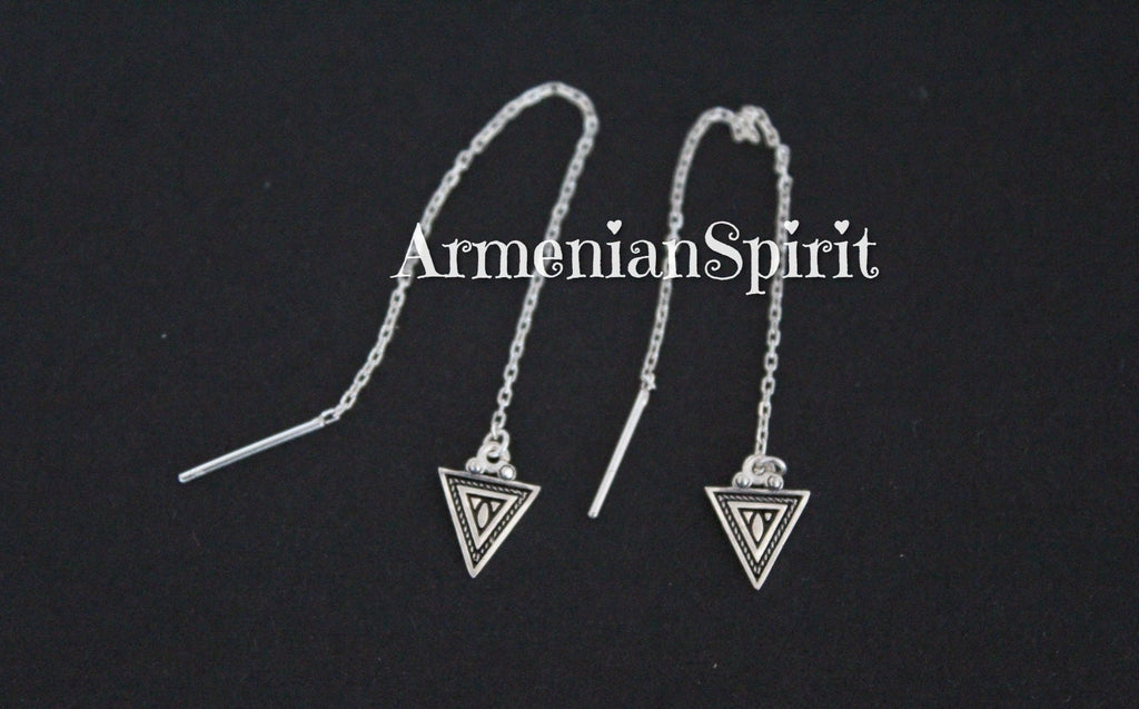 Add some unique flair to your wardrobe with our long chain earrings! Handmade with sterling silver 925, these ethnic earrings with Armenian ornaments are high quality and have an Armenian traditional touch. Perfect for those who appreciate one-of-a-kind pieces of jewelry. Elevate your style with our Armenian Spirit jewelry collection.