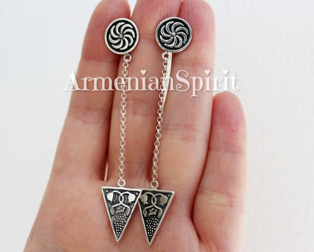 Discover the perfect gift at Armenian Spirit - the best store for unique, high-quality aterling jewelry. Our silver chain earrings feature beautiful Armenian symbols of grape, pomegranate, and arevakhach eternity, making them a meaningful and stylish addition to any outfit. Treat yourself or someone special to a piece of Armenian culture with - buy jewelry from Etsy. Discover the beauty of Armenian jewelry at the Armenian Spirit store. Crafted with sensitive skin in mind, our designs are perfect for those prone to irritation. Plus, enjoy free shipping worldwide with a tracking number and exclusive discounts. Elevate your style with our jewelry today.