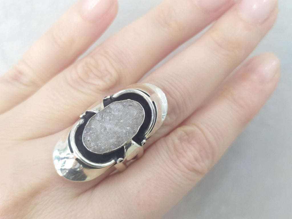 Discover the beauty of vintage jewelry with our High Quality Chalcedony Druse Gemstone Ring. Crafted with sterling silver 925, this ring exudes elegance and sophistication. Add a touch of timeless style to any outfit with this stunning piece from the Best Jewelry Store. Looking for stunning handmade jewelry? Look no further than our Etsy jewelry store! Our high-quality pieces are perfect for any occasion and we offer free shipping worldwide. With convenient payment options including Paypal, Mastercard, and Visa, shopping with us is a breeze. Elevate your style with our unique designs today.