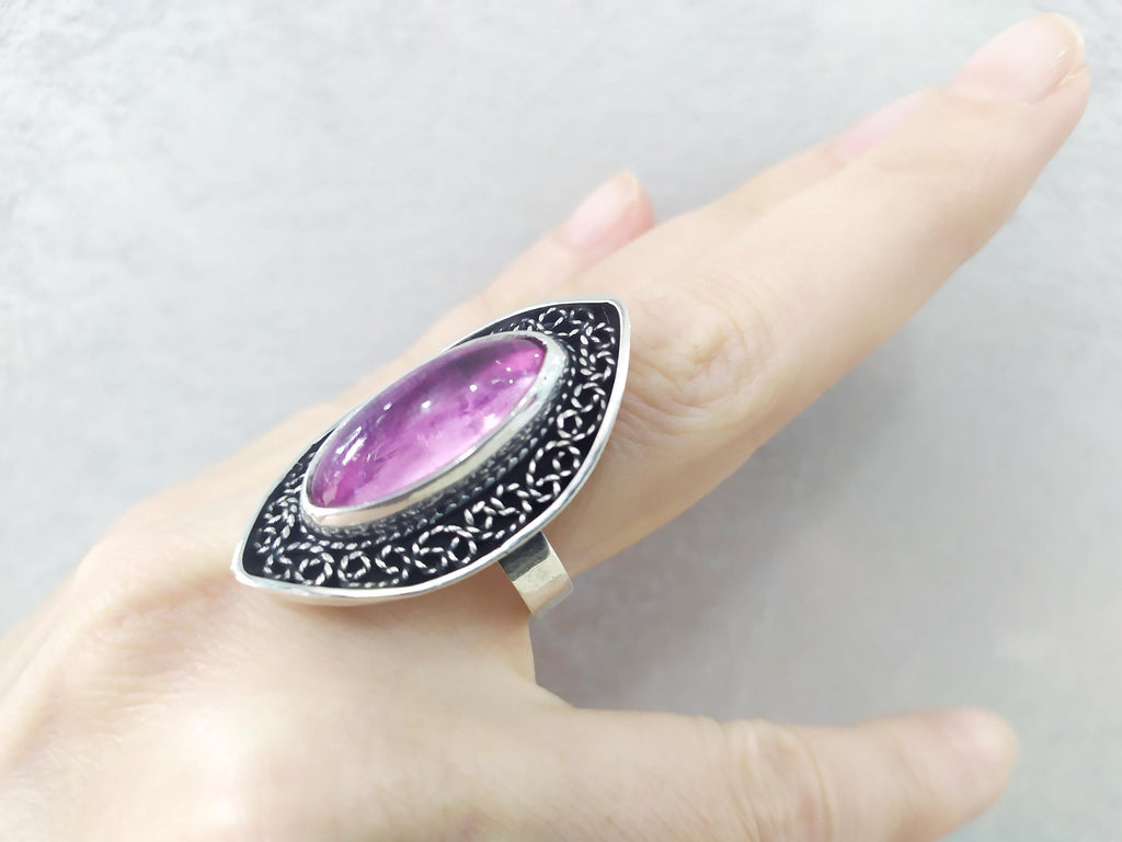 This vintage sterling silver ring boasts a beautiful purple amethyst gemstone, accented with intricate Armenian artisan design and ornaments. Add a touch of elegance and history to your look. Our high-quality pieces are perfect for any occasion and we offer free shipping worldwide.