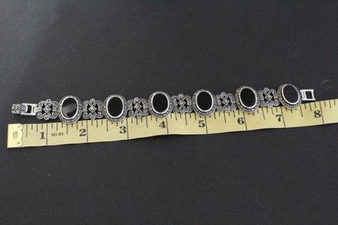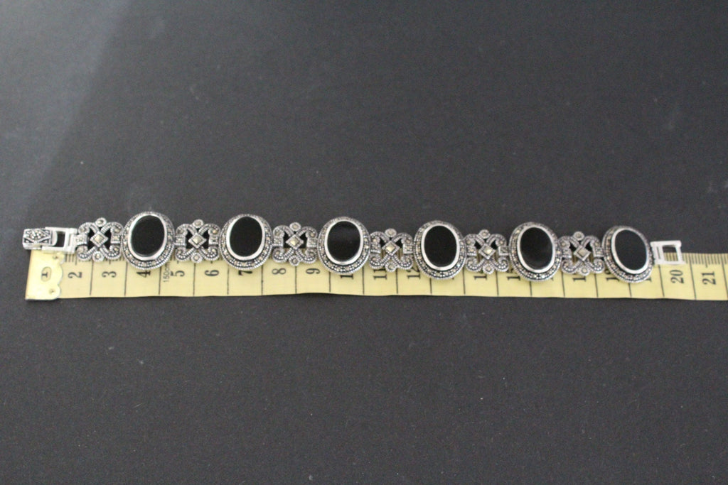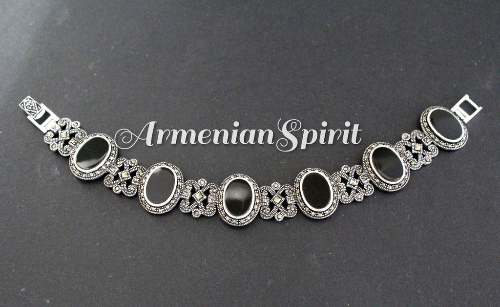 Indulge in a touch of vintage elegance with our vintage style bracelet. Crafted with natural black onyx and small oval shapes, this bracelet evokes a luxurious renaissance queen look. Made with SILVER 925, it's perfect for the woman who loves timeless beauty. Perfect for vintage jewelry lovers and those who love shopping on Armenian Spirit.