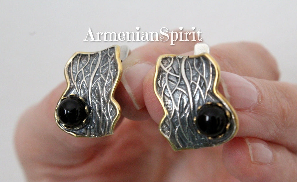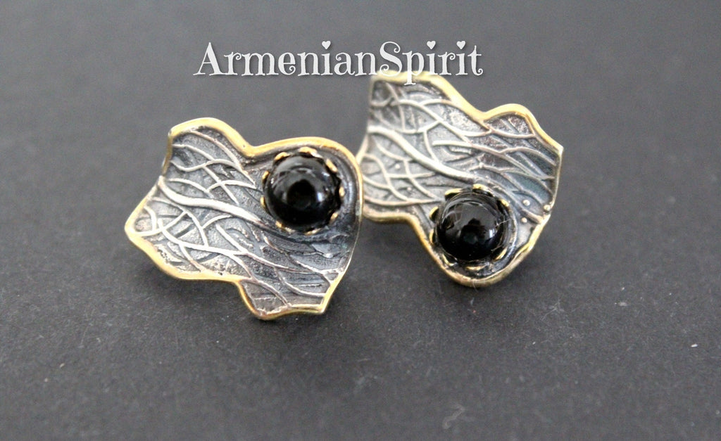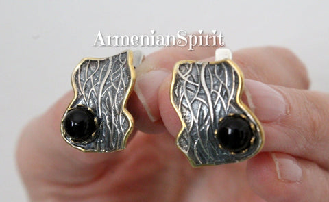 Discover unique and elegant accessories from the Armenian Spirit. Our high-quality vintage-style ring and earrings feature black onyx gemstones set in a gold-plated SILVER 925 base, creating a stunning and timeless piece of Armenian jewelry. Elevate your style with these exquisite pieces.