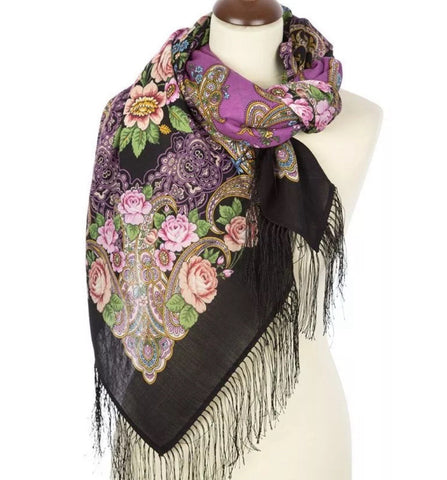 49" square scarf delivers exceptional softness without any prickle, making it ideal for sensitive skin. The luxurious fabric provides genuine warmth during harsh winters while remaining breathable enough for cool summer evenings. Its generous size and elegant black base with vibrant pink floral design offer versatility for layering or wearing as a traditional shawl. Experience the comfort of fine wool that feels as good as it performs.